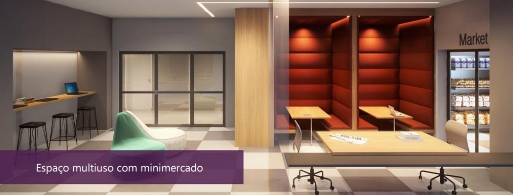 Ambiente Integrado: O studio possui um layout inteligente que maximiza o uso do espaço, com área de estar, dormitório e cozinha em um único ambiente, proporcionando uma sensação de amplitude.
