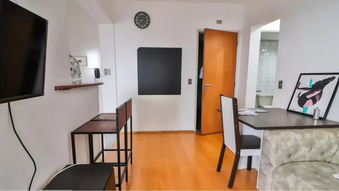 1 Dormitório1 Banheiro1 VagaGaragem Coberta1 Sala de TV1 Cozinha1 Área de serviço