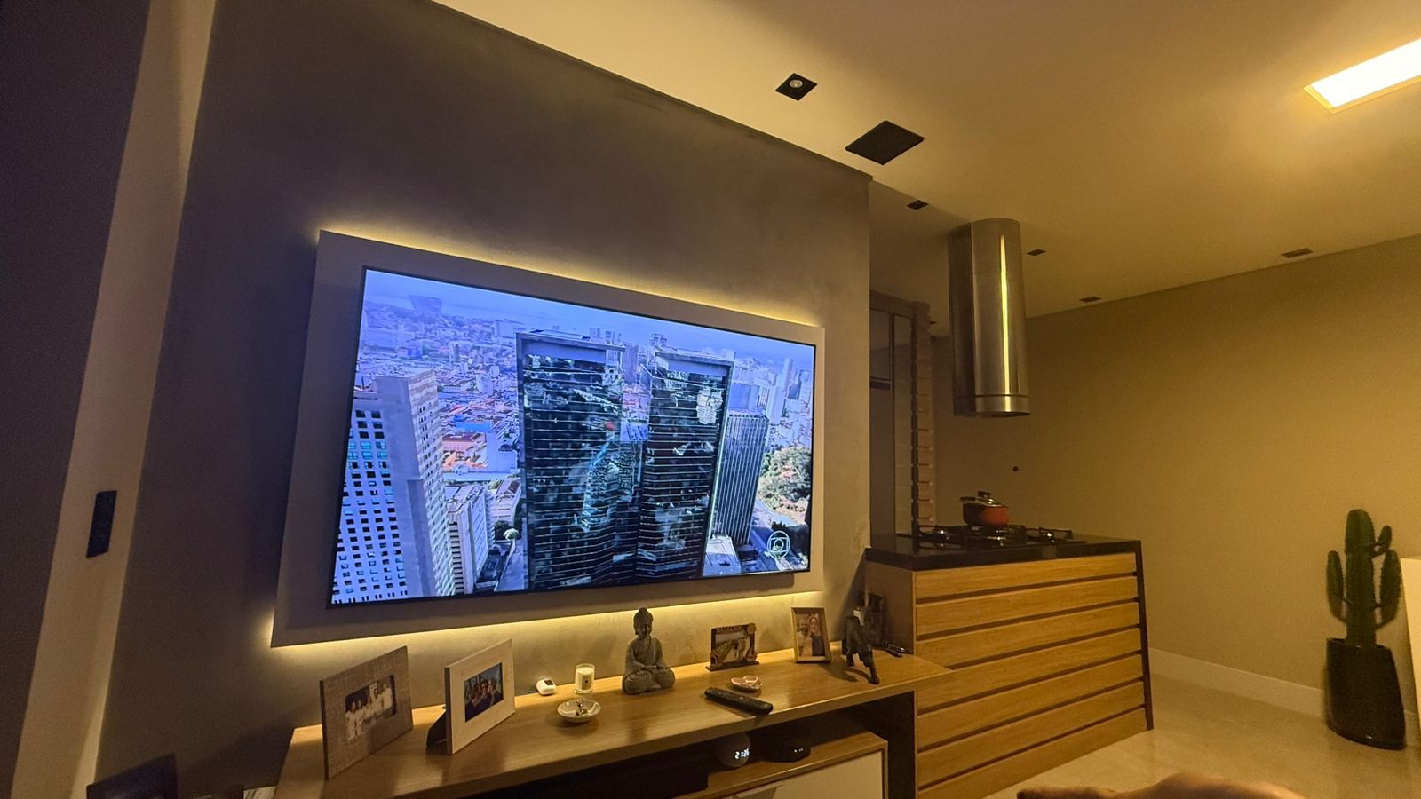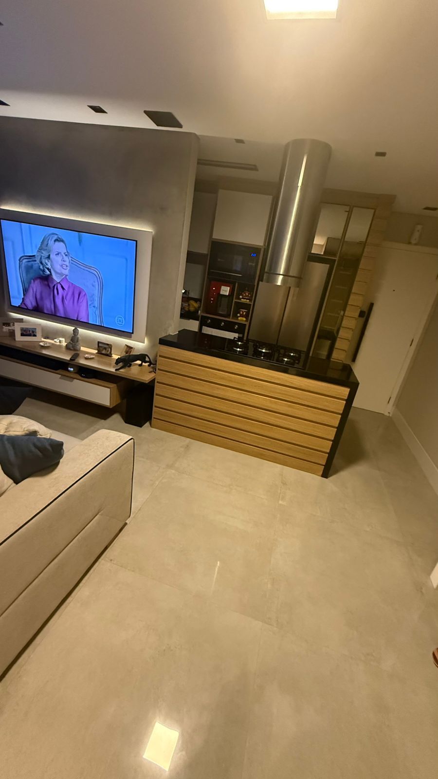 PORCELANATO ELIANE DE PRIMEIRA LINHA, RODAPÉS BRANCO DE PORCELANATO, ESPELHO BRONZE NA SALA, BOX ELEGANCE, GESSO COM CORTINEIRO E ILUMINAÇÃO. JARDIM VERTICAL, BANHEIROS COM NICHO ILUMINADO, PISOS NOS QUARTOS E CORREDORES QUE IMITAM MADEIRA.