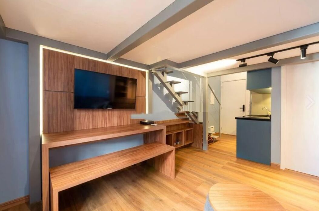 Loft novo, mobiliado com armários Planejados, Sofá, TV, espaço para home office e itens de Cozinha (cooktop, microondas e geladeira), além de Ar Condicionado Quente e Frio, o banheiro conta com chuveiro e torneira de pia aquecidos com gás encanado, secador de cabelo e Porta-Toalha aquecido, além de cofre de segurança para guarda de pertences de valor. O apartamento tem o pé direito duplo e o dormitório fica no mezanino, o que adiciona aproximadamente 8 metros quadrados além dos 25 metros do térreo, o imóvel é bem espaçoso e iluminado, com janela grande que recebe o sol da manhã. O condomínio possui lazer completo no rooftop com piscina, academia muito bem equipada, vestiários masculino e feminino, além de espaço gourmet com churrasqueira e forno de pizza, ótimo para aproveitar com a família e amigos. A localização é excelente, pois o condomínio está há apenas 2 minutos a pé da estação de metrô Vila Madalena (linha Verde) e mais poucos metros andando para as principais atrações do bairro (bares, restaurantes, pizzarias, Beco do Batman etc.). O condomínio ainda possui a conveniência de uma Lavanderia OMO com acesso restrito para os moradores, uma Loja Oxxo no térreo e um bicicletário grande com segurança (acesso por biometria e monitorado por câmeras de segurança). A portaria funciona 24 horas por dia com monitoramento por câmeras de segurança.